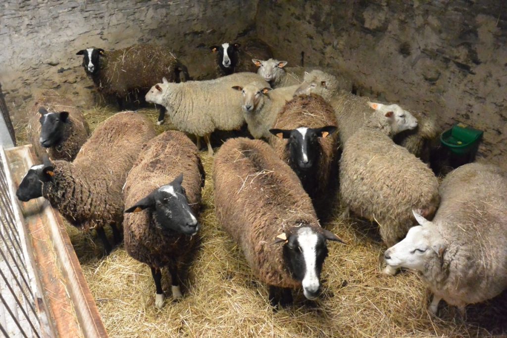 Nous avons actuellement une vingtaine de brebis, de plusieurs races croisées, afin de trouver un bon équilibre entre rusticité, docilité, rendement et qualité de la viande.
